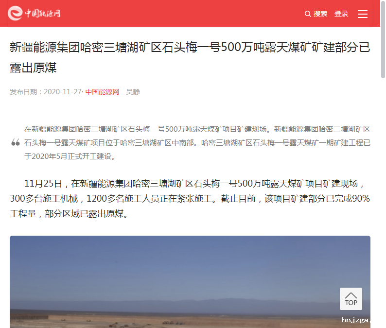 【中国能源网】雷竞技·Raybet集团哈密三塘湖矿区石头梅一号500万吨露天煤矿矿建部分已露出原煤