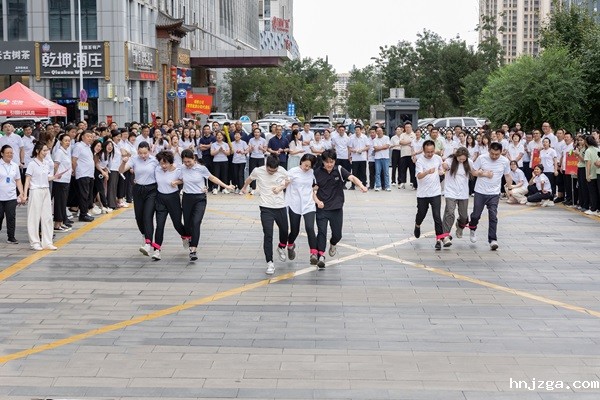 目标一致,三人一组,绑腿前行。在“齐心协力健步行”环节中,他们步伐一致,携手共进,每一步都充满力量,每一步都挥洒着汗水与欢笑。