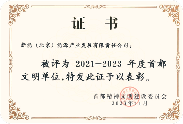 喜报!新能(北京)公司荣获“首都文明单位”称号
