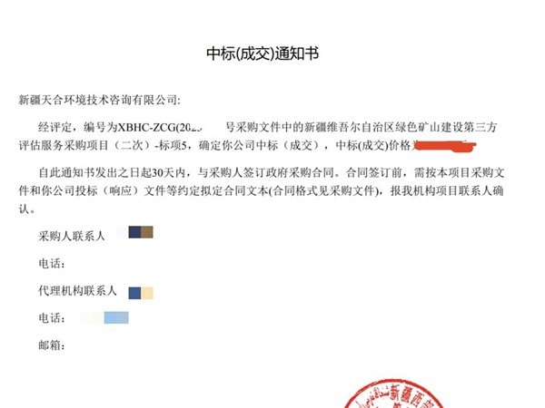 新疆天合环境技术咨询有限公司中标绿色矿山建设第三方评估服务项目
