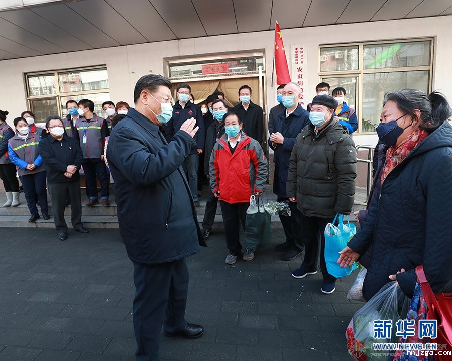 习近平首先来到北京市朝阳区安贞街道安华里社区,了解基层一线疫情联防联控情况。在社区居民委员会疫情防控指挥部,习近平听取了安贞街道和安华里社区开展联防联控情况介绍。习近平对社区采取多项措施,落实防控责任,实现入户排查、重点群体监控“两个全覆盖”等做法表示肯定。他强调,社区是疫情联防联控的第一线,也是外防输入、内防扩散最有效的防线。把社区这道防线守住,就能有效切断疫情扩散蔓延的渠道。全国都要充分发挥社区在疫情防控中的阻击作用,把防控力量向社区下沉,加强社区各项防控措施的落实,使所有社区成为疫情防控的坚强堡垒。要以疫情防控工作成效来检验和拓展“不忘初心、牢记使命”主题教育成果,发挥基层党组织政治引领作用和党员先锋模范作用,把社区居民发动起来,构筑起疫情防控的人民防线。
