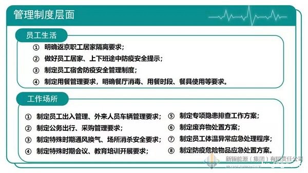 落实安全生产和疫情防控主体责任,建立人员健康档案,所有返京员工隔离期满方能复工;做好出入口执勤值守和安全生产应急值守工作,加强宣传教育,利用手机、网络课堂等方式开展全员安全生产和疫情防控教育培训。