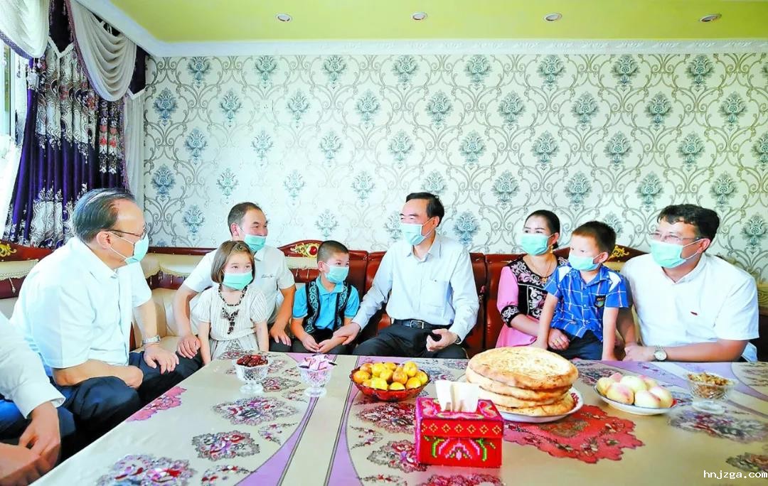 日前,自治区党委书记陈全国,自治区党委副书记、自治区主席雪克来提·扎克尔在克孜勒苏柯尔克孜自治州调研统筹推进常态化疫情防控和经济社会发展工作。这是陈全国、雪克来提·扎克尔在阿克陶县丝路佳苑易地扶贫搬迁安置点,走进建档立卡贫困户穆拉提·艾海提家中,关心询问搬迁后的生活情况,勉励他们持续增收致富,把日子越过越好。全媒体记者崔志坚摄