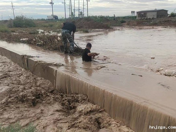 汛情就是命令,农场全体职工始终坚守在抗洪一线,昌吉农场场长徐成祥,眼看水流越来越大,淤堵越来越多,严重威胁农田渡槽安全,渡槽一旦垮塌,通过渡槽引水灌溉的8000余亩土地,今秋明春的供水就会被阻断,关键时刻,徐成祥同志跳入深至胸口的洪水中,争分夺秒地打捞、清理被洪水冲下来的杂物。在徐成祥同志的带领下,昌吉农场更多的同志跳入水中加入抢险队伍,经过近三个小时的努力,险情终于得到了控制,保障了蓄水池及机房的安全,避免了数十万元的经济损失。