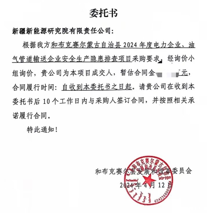 近日,新能源研究院与塔城地区和布克赛尔县,关于县城安全隐患排查项目开展业务交流。现已获得和布克赛尔县发展和改革委员会出具的隐患排查项目《委托书》,并按照委托内容,圆满完成首次隐患排查工作。