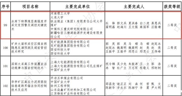 近日,中国安全生产协会发布《关于公布中国安全生产协会第五届安全科学技术奖获奖名单的通知》,三塘湖公司参与申报的“水库下特厚煤层高强度开采灾变预警及调控关键技术”项目在1627个申报...