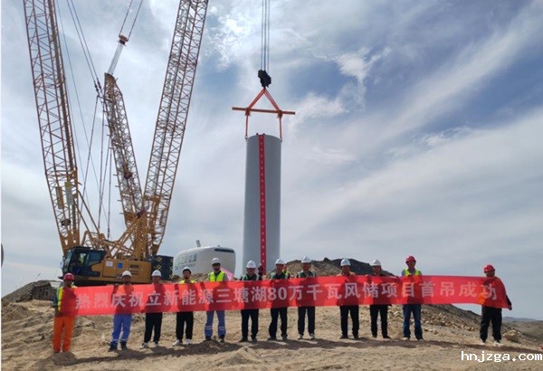 近日,立新能源公司三塘湖80万千瓦风储项目首台风机首段塔筒吊装工作顺利完成,这标志着项目已全面进入设备安装阶段。